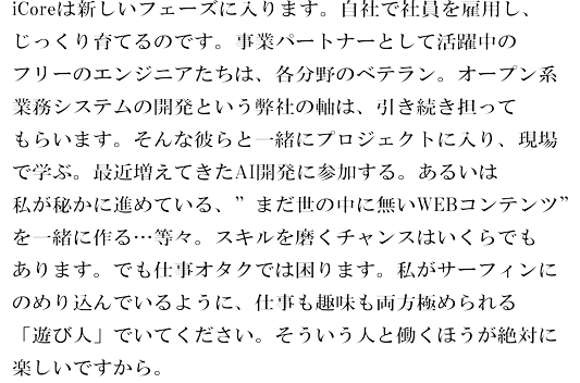 iCoreへのお問い合わせは、こちらからお願いいたします。 お問い合わせに記載された内容は、当社のプライバシーポリシーに基づき管理し、 お問い合わせ対応以外の目的では使用いたしません。
